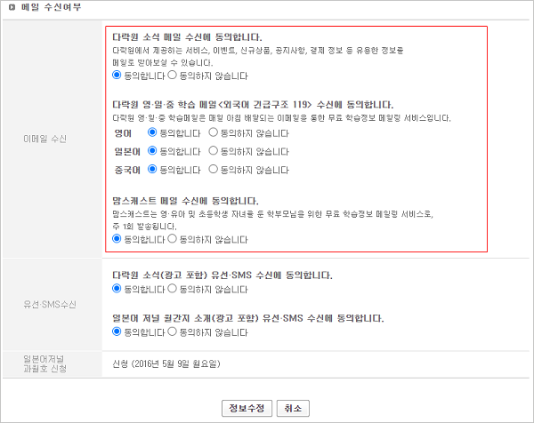 다락원 이메일 수신 설정(동의/거부) 하고 싶어요.