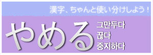 ¿À´Ã ¹è¿ì°Ô µÉ ´Ü¾î´Â ªäªáªëÀÔ´Ï´Ù. ªäªáªë´Â ¡®±×¸¸µÎ´Ù, ²÷´Ù¡¯¶ó´Â Àǹ̸¦ Áö´Ï°í ÀÖ½À´Ï´Ù¸¸, »ç¿ëµÇ´Â ÇÑÀÚ¿¡ µû¶ó Àǹ̿¡ ¾à°£ÀÇ Â÷À̰¡ ÀÖ½À´Ï´Ù.