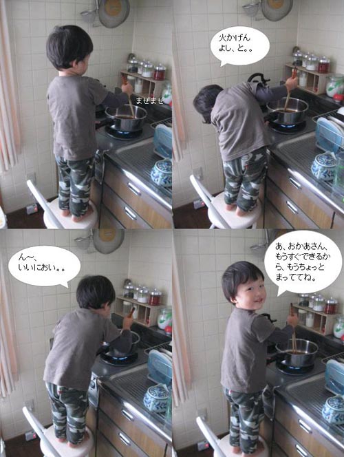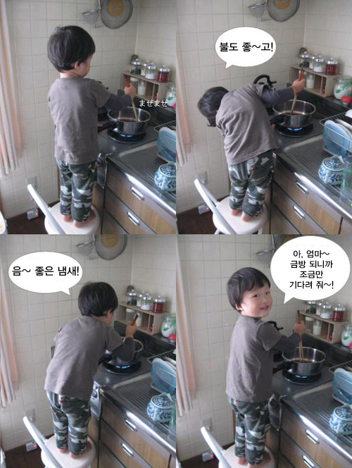 ¿äÁò ¿ä¸®¿¡ Èï¹Ì¸¦ °®°Ô µÈ ¾Æµé. Á¦°¡ ºÎ¾ý¿¡ ¼¼ ¹«¾ð°¡ ¸¸µé°í ÀÖÀ¸¸é, ¿·¿¡ ÀÇÀÚ¸¦ °¡Á®¿Í ¿Ã¶ó¼¼´Â, ¡°¿Í~ ÀÌ·¸°Ô ¸¸µå´Â°Å±¸³ª~.¡±¶ó¸ç °ßÇÐÀ» Çϰí ÀÖ½À´Ï´Ù.