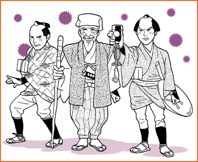¹ÌÅäÄÚ¸óÀÌ ÁÖÀΰøÀÎ ÀÌ µå¶ó¸¶´Â ¿¡µµ½Ã´ë ¸»±âºÎÅÍ ¸ÞÀÌÁö½Ã´ë Ãʱ⿡ °ÉÃÄ ¾²¿©Áø ¡º¹ÌÅäÄÚ¸ó ¸¸À¯±â(â©戸黄ڦؼë´ÑÀ)¡»¶ó´Â Ã¥À» ¼ÒÀç·Î Çϰí ÀÖ½À´Ï´Ù. µå¶ó¸¶¿¡¼ ¹ÌÅäÄÚ¸óÀº ÀºÅðÇÑ »óÀÎÀ¸·Î º¯ÀåÇÏ°í¼ ÀþÀº µÎ »ç¹«¶óÀ̸¦ °Å´À¸®°í ÀϺ» Àü±¹À» À¯¶÷ÇÕ´Ï´Ù. ±×µéÀÌ °¡´Â °÷¸¶´Ù ¸Å¹ø ¿©·¯ °¡Áö »ç°ÇµéÀÌ ÀϾ´Âµ¥, ¸¶Áö¸·¿¡´Â ¹ÌÅäÄÚ¸óÀÌ ÀÚ½ÅÀÇ ½ÅºÐÀ» ¹àÈ÷°í ¾ÇÀεéÀ» ¹°¸®ÃÄ »ç°ÇÀ» ÇØ°áÇÑ´Ù´Â ÆÐÅÏÀÇ µå¶ó¸¶ÀÔ´Ï´Ù. ½ÅºÐÀ» ¹àÈ÷´Â Àå¸é¿¡¼ µÎ ¸íÀÇ ¹«»ç Áß ÇÑ ¸íÀÌ ¹ÌÅä °¡¹®À» Ç¥½ÃÇÏ´Â ¹®ÀåÀÌ ±×·ÁÁ® ÀÖ´Â ÀÛÀº ±Ë¸¦ µé¾î º¸ÀÌ¸é¼ ¡°ÀÌ ¹®ÀåÀÌ º¸ÀÌÁö ¾Ê´À³Ä!(ª³ªÎڣᶪ¬ÙͪËìýªéªÌª«£¡)¡±¶ó°í ¸»Çϴµ¥, ¸¶Ä¡ ¿ì¸®³ª¶óÀÇ ¡°¾ÏÇà¾î»ç ÃâµÎ¾ß!¡±¿Í °°ÀÌ ³Ê¹«³ªµµ À¯¸íÇÑ ´ë»çÀÔ´Ï´Ù.