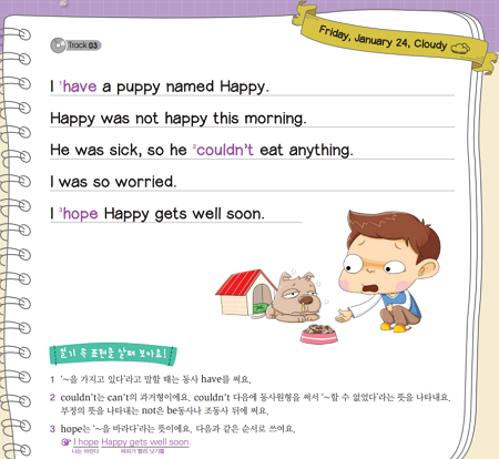 ¿µ¾î Àϱ⸦ óÀ½ ½á º¸´Â ¾ÆÀ̵éÀÌ ´Ù¼¸ ¹®ÀåÀÇ ÂªÀº ¿µ¾î Àϱ⸦ µû¶ó ¾²¸é¼­ ºÎ´ã ¾øÀÌ ¾²±â¸¦ ½ÃÀÛÇÒ ¼ö ÀÖ´Â ±³ÀçÀÔ´Ï´Ù. ¾ÆÀ̵éÀÌ ÀÏ»ó»ýȰ¿¡¼­ Á¢ÇÏ´Â Àç¹Ì³­ ¼ÒÀ縦 Áß½ÉÀ¸·Î ÀϱâÀÇ ³»¿ëÀ» ±¸¼ºÇß½À´Ï´Ù. ¿µ¾î Àϱ⸦ ÇÑ ¹®À徿 µû¶ó ¾²°í, ´Ù¸¥ ´Ü¾î³ª Ç¥ÇöÀ» »ç¿ëÇØ ¹®ÀåÀ» ¿©·¯ ¹ø ½á º¸¸é¼­ Ç¥ÇöÀ» ÀÚ¿¬½º·´°Ô ÀÍÈù ÈÄ, ³ª¸¸ÀÇ ¿µ¾î Àϱ⸦ ¿Ï¼ºÇÏ´Â ´Ü°èº° ÇнÀÀÌ °¡´ÉÇÕ´Ï´Ù.