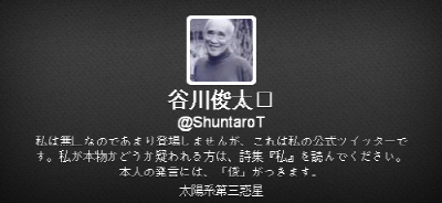 Ÿ´Ï°¡¿Í šœÅ¸·Î´Â Àۻ簡, ½ÃÀÎÀÔ´Ï´Ù. ±×ÀÇ ÀÛǰÀº ÀϺ» »Ó¸¸ ¾Æ´Ï¶ó ¿µ¾î, ÇÁ¶û½º¾î, µ¶ÀϾî, ½½·Î¹ÙŰ¾Æ¾î, µ§¸¶Å©¾î, Áß±¹¾î, ¸ù°ñ¾î µîÀ¸·Î ¹ø¿ªµÇ¾î Àü¼¼°è¿¡ µ¶ÀÚÃþÀÌ µÎÅÓ°í ±× ¶ÇÇÑ ¿Ü±¹ ÀÛǰÀ» ¹ø¿ªÇϱ⵵ ÇÑ´ä´Ï´Ù. 2007³â±îÁö °£Çà ÇÑ ½ÃÁýÀº 80±Ç¿¡ À̸£´Âµ¥, Æø ³ÐÀº ÀÛdzÀÌ Æ¯Â¡ÀÔ´Ï´Ù. ¿ì¸®°¡ Àß ¾Ë°í ÀÖ´Â ³ë·¡ Áß¿¡´Â ÇÏ¿ïÀÇ ¿òÁ÷ÀÌ´Â ¼º(«Ï«¦«ëªÎÔѪ¯àò)ÀÇ ÁÖÁ¦°î ¼¼°èÀÇ ¾à¼Ó(á¦Í£ªÎå³áÖ)ÀÌ ±×°¡ ¾´ ³ë·¡¶ø´Ï´Ù.