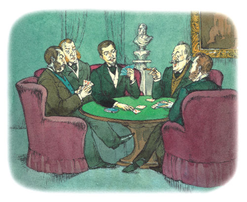 Meanwhile, Fogg went to the Reform Club. After having his meals and reading several newspapers, Phileas Fogg met his usual whist partners.As they began playing, Thomas Flanagan asked, ¡°Have you heard about the robbery?¡±¡°Yes,¡± replied Stuart, ¡°the bank is going to lose that money.¡± ¡°I disagree,¡± replied Ralph. ¡°Skilled detectives have been sent all around the world to catch the robber!¡± No country is safe for him.¡±