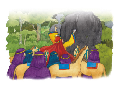 When the horsemen came up, Ali Baba counted them. There were forty men in all. They got off their horses before a black rock. The captain said the words, ¡°Open, sesame.¡± A door in the rock magically opened. The men all went inside, and the door closed behind them.
