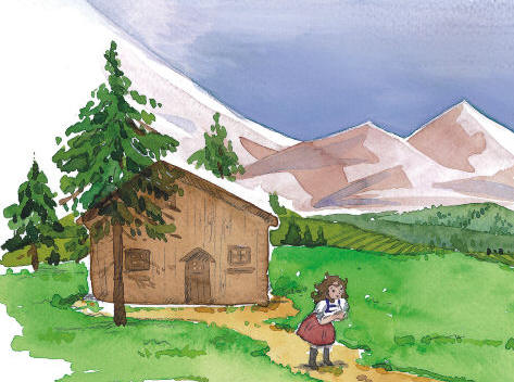 It was a hot morning in June in the Alps. Heidi walked behind her aunt named Dete. They were walking through the village and up the mountain. Heidi was very hot because she was wearing all her clothes. She had to carry them to her new home. She was only six year old.