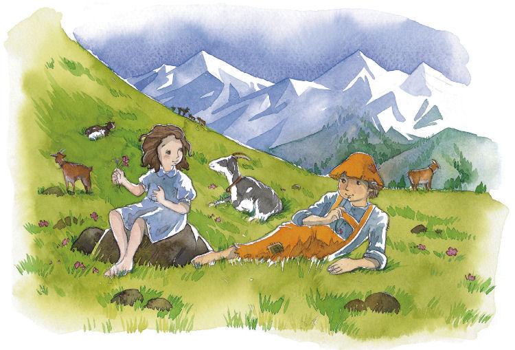 Then she danced behind Peter. He thought she was funny. The two children began laughing. Dete caught up with them. ¡°Where are your clothes?¡± She asked. ¡°I don¡¯t need them!¡± Heidi said. ¡°I want to run free like the goats!¡±