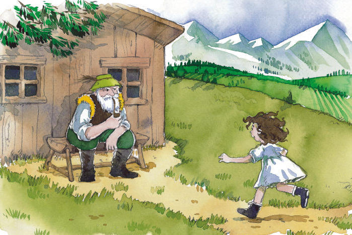 Aunt Dete scolded Heidi and sent Peter to get her clothes. They walked for another hour. Near the mountaintop was Grandfather¡¯s hut. The old man was sitting in front of the house. Heidi ran up to him and held out her hand. ¡°Hello, Grandfather,¡± she said. He held her hand and stared at her