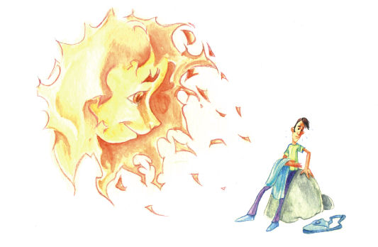 Next, it was the sun¡¯s turn. Coming out from behind the clouds, the sun shone its warm, comfortable light down on the traveler. The traveler felt the gentle warmth on his shoulders. Finally, he sat down and took off his coat. It was clear that the sun had won.