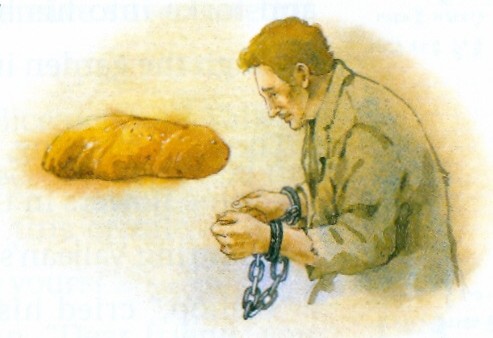 Jean Valjean left peacefully. Outside it was dark, cold, and windy. He was desperate for a place to rest. He lay down on a stone bench in front of a church and tried to sleep. But a woman came out and asked, ¡°How can you sleep outside on that stone bench?¡±