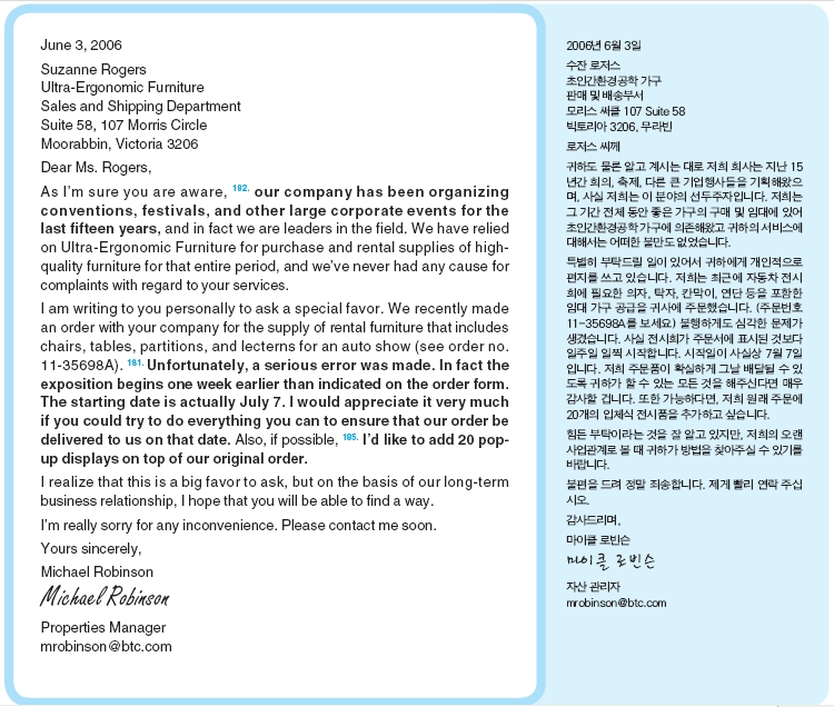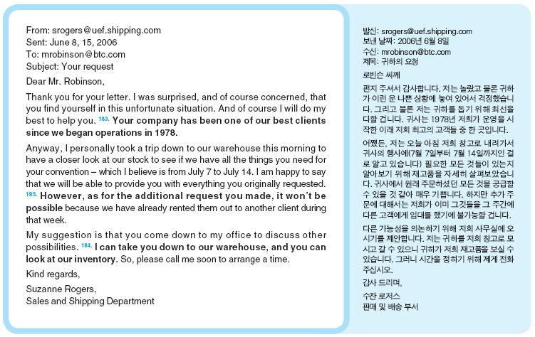Questions 181-185. refer to the following letter and e-mail message.