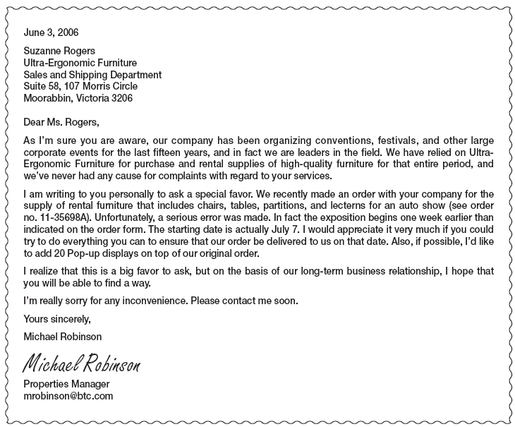 (B) To ask for a change in the delivery date