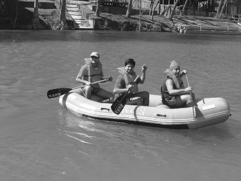 ¡¤ They¡¯re riding in a boat.