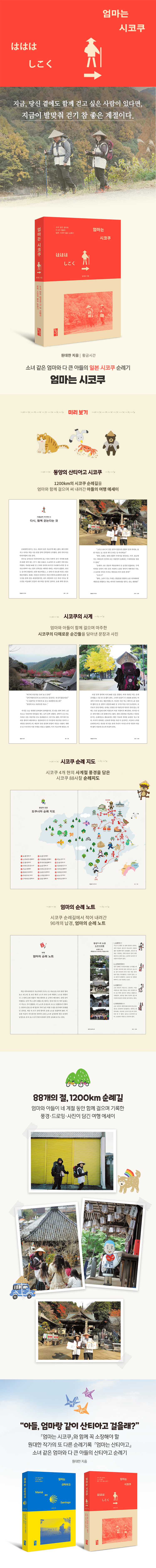 ≪엄마는 시코쿠≫는 일본 시코쿠 순례길을 엄마와 함께 걸으며 써내려간 아들의 여행 에세이이다. 1200년 전 진언종 창시자인 코보 대사의 발자취를 따라 88개의 절을 순례하는 시코쿠 헨로는 단순한 여행이 아니라 삶을 돌아보고 마음을 걸어가는 길이다.
