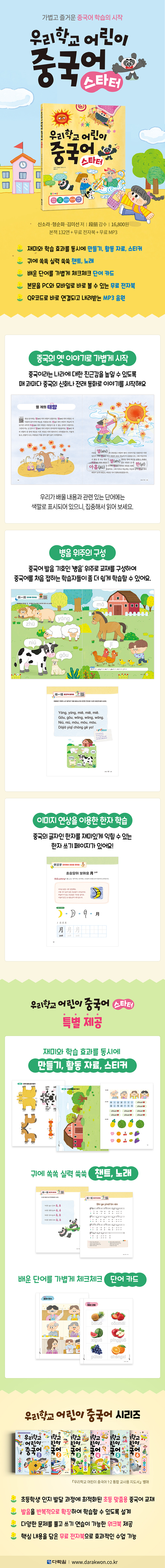 ● 중국어를 처음 접하는 어린 학습자를 위해 중국어 발음 기호인 ‘병음’ 위주로 교재 구성
