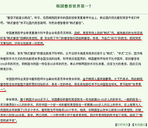 Çѱ¹ÀÎÀº 4,600¿©¸¸ ¸í Á¤µµÀ̸ç, Çѱ¹¿¡¼ °¡Àå À¯¸íÇÑ ¼ºÇü¿Ü°ú ÀÇ»ç´Â Àϳ⿡ ´ÜÁö 20-30Â÷·ÊÀÇ ¼ö¼úÀ» ÇÒ »ÓÀ̰í Çѱ¹ÀÇ ÀÏ¹Ý ÀÇ»çµéÀº Àϳ⿡ °Ü¿ì 3-5Â÷·ÊÀÇ ¼ö¼úÀ» ÇÏÁö¸¸, Áß±¹ÀÇ ÁÁÀº ¼ºÇü¿Ü°ú ÀÇ»ç´Â Àϳ⿡ 1,000Â÷·Ê ÀÌ»óÀÇ ¼ö¼úÀ» ÇÑ´Ù. »óÇÏÀÌÁ¦9Àικ´¿øÀº À۳⿡¸¸ 3¸¸ ¿© Â÷·ÊÀÇ ¼ö¼úÀ» Çß´Ù. Áß±¹ ¼ºÇü¿Ü°ú ÀÇ»ç´Â ¸Å³â Æò±Õ 100°ÇÀÇ ¼ö¼úÀ» ÇÑ´Ù. ±×(°æ¼º¼ºÇü¿Ü°ú ÀÇ»ç)´Â Çѱ¹ÀÇ ºÎ»ê¿¡´Â °Ü¿ì 150°³ÀÇ ¼ºÇü¿Ü°ú°¡ ÀÖÀ¸¸ç, ¼¿ï ½Ã¿¡´Â 180¿© °³ÀÇ º´¿øÀÌ Àִµ¥ ±× Áß¿¡¼ 2-3°³ÀÇ º´½Ç, ÇÑ ¸íÀÇ ÀÇ»ç, µÎ ¸íÀÇ °£È£»ç¸¦ µÐ °÷ÀÌ ¹Ù·Î ¼ºÇü¿Ü°úÀ̸ç ÀÌ·± ¼ºÇü¿Ü°ú ÀÇ»çµéÀÌ Áß±¹¿¡ ¿À¸é ¡®±ÇÀ§ ÀÖ´Â ¼ºÇü Àü¹®°¡¡¯¶ó ºÒ¸®°Ô µÇ´Â °ÍÀ̶ó°í ¸»Çß´Ù.