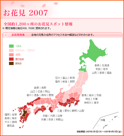 ÀϺ» º½Ã¶ÀÇ ´ëÇ¥ÀûÀΠdz°æ Áß, Çϳª°¡ ¹Ù·Î ¡®ü£Ì¸(ªÏªÊªß, Çϳª¹Ì) ²É±¸°æ¡¯ÀÔ´Ï´Ù. º¸Åë º¢²ÉÀÌ ¸¸°³ÇÏ´Â 4¿ù ÃʺÎÅÍ ½ÃÀÛÀÌ µÇ´Âµ¥¿ä. À§µµ°¡ Å©°Ô ´Ù¸¥ ÀϺ»ÀÇ ÁöÇüÀû Ư¼º¿¡ µû¶ó Áö¿ª¿¡ µû¸¥ ¸¸°³ ½ÃÁ¡ÀÌ ´Ù¸£°í, ±×¿¡ µû¶ó¼ Çϳª¹Ì ½ÃÁðµµ ´Ù¸£´ä´Ï´Ù. Áö±Ý ¼Ò°³ÇÏ´Â »çÀÌÆ®´Â ÀϺ» À¯¸í Æ÷ÅлçÀÌÆ® exciteÀÇ ÇÑ ¼½¼ÇÀε¥, 4¿ù´Þ Áö¿ªº°·Î Çϳª¹Ì ½ÃÁð Àå¼Ò (ªªü£Ì¸«¹«Ý«Ã«È)¸¦ ¼Ò°³Çϰí ÀÖ½À´Ï´Ù.