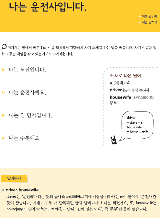 ¡Ü ²À ¸»ÇÏ°í ½Í¾ú´ø 78°³ ±âÃʹ®ÀåÀ» »Ì¾Ò´Ù. ¡Ü ABCºÎÅÍ ±âÃÊ ¹®¹ý±îÁö, ¿µ¾î ¸ô¶óµµ °Å¶áÇÏ´Ù. ¡Ü ¾Ë±â ½¬¿î ÇÑ±Û ¹ßÀ½ Ç¥±â·Î »çÀü ¾ø¾îµµ ½±´Ù. ¡Ü ¿µ¾î °£ÆÇ Àб⠰°Àº »ýȰ ¼Ó ¿µ¾î¸¦ ÀÍÈú ¼ö ÀÖ´Ù. ¡Ü Ä£ÀýÇÑ ³ìÀ½À¸·Î È¥ÀÚ¼µµ °øºÎÇÒ ¼ö ÀÖ´Ù. |