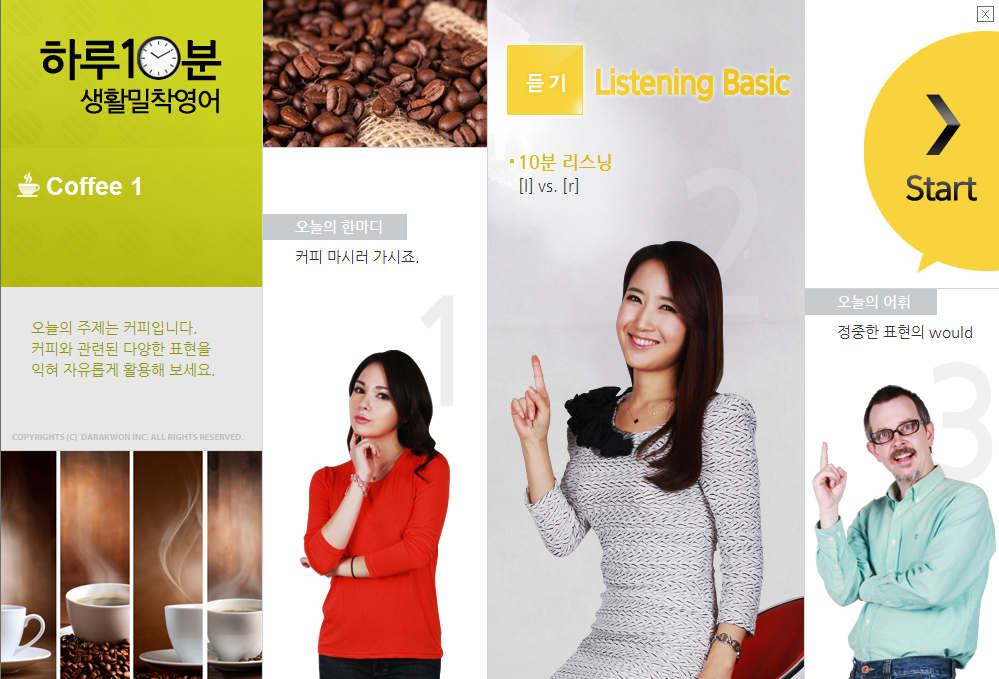 Ä¿ÇÇ, ½º¸¶Æ®Æù, À½¾Ç µî ÀÏ»ó »ýȰ°ú ¹ÐÂøµÈ 48°³ÀÇ Å׸¶·Î ¸ÅÀÏ ÇÏ·ç 10ºÐ¾¿ °øºÎÇÏ¸é ¿µ¾î°¡ µÇ´Â ÇÁ·Î±×·¥ÀÔ´Ï´Ù.
