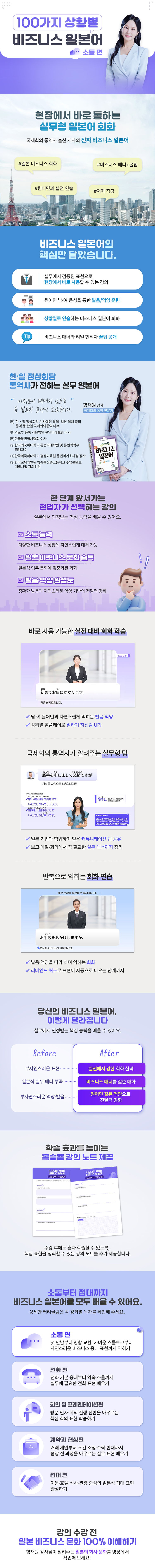 ② 첫 만남·부탁·제안·거절 등 다양한 비즈니스 상황에서 즉시 활용 가능한 실무 회화를 배울 수 있습니다.